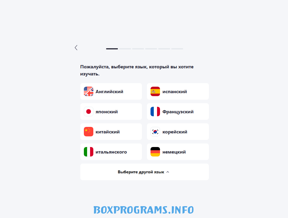 Выбирает язык для изучения.